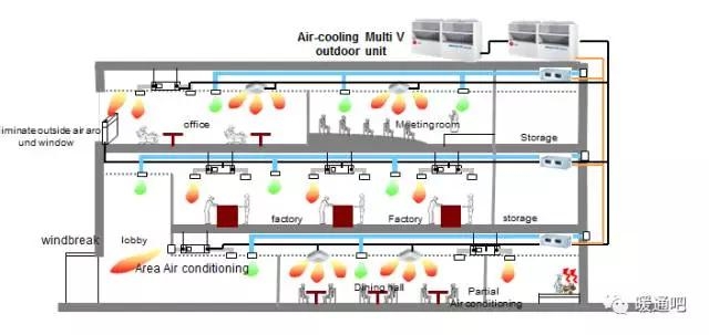 在一些面積較大的辦公、商業、公寓區域,一臺新風設備不能滿足要求時可以進行分區進行新風設計。