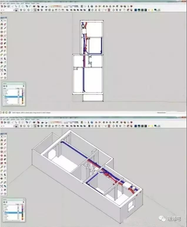 2.如果和我一樣房間面積有限需要很擠的安排管道。一定要使用類似sketchup這樣的可視化工具對你的設計進行檢查,確保不會有無法或者很難安裝的部分,然后要想好安裝順序再讓工人一步一步來。